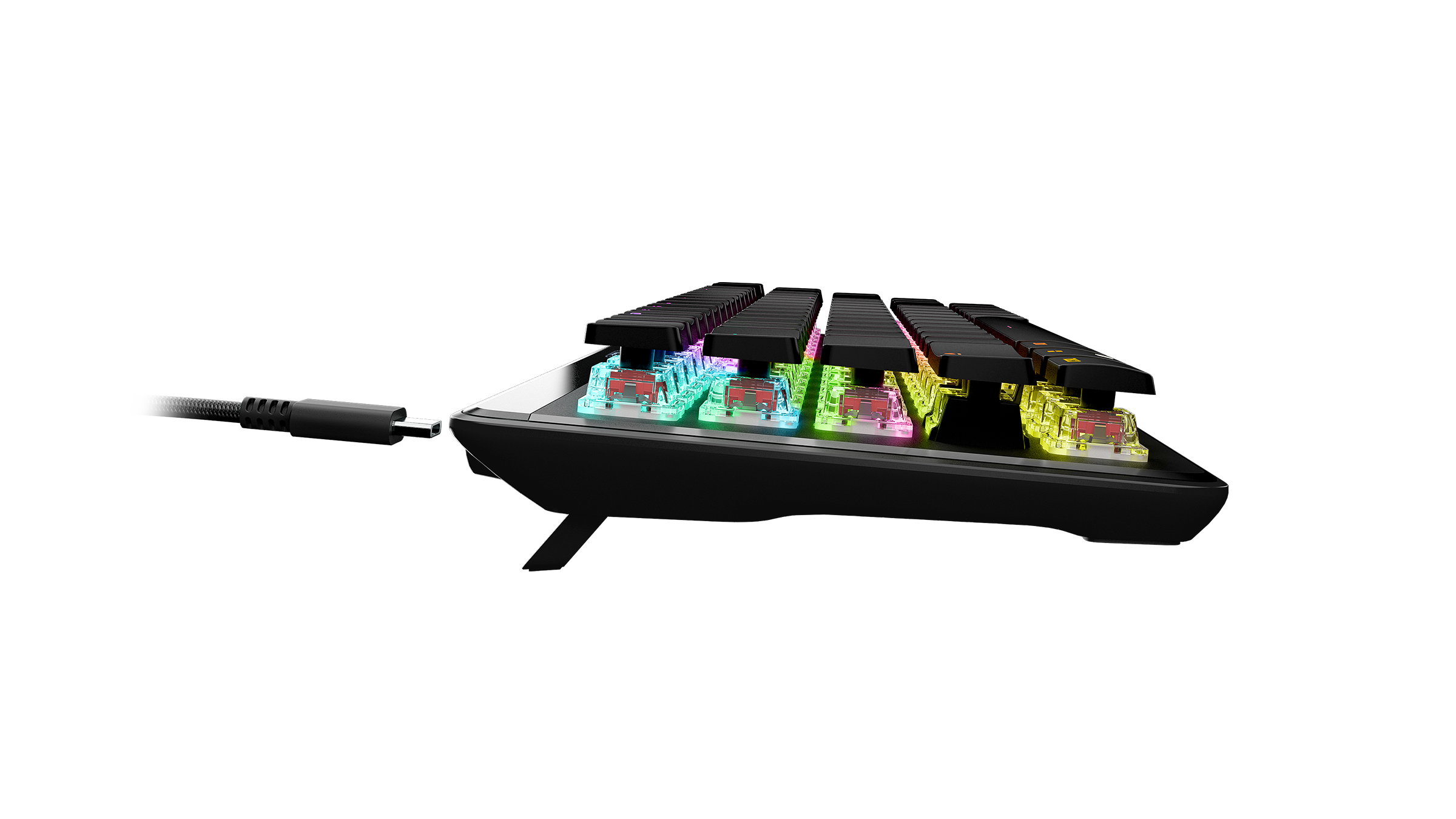 - Cross-shaped stems with third-party keycap compatibility